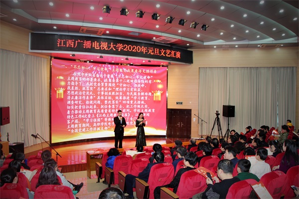2019年12月31日下午,“不忘初心、牢记使命”元旦文艺汇演在江西广播电视大学学术报告厅拉开帷幕,在家校领导与教职工、学生代表来到演播现场,共同欣赏这一视听盛宴,喜迎新年。