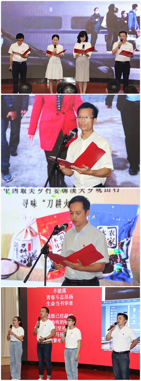 在“点燃新时代伟大精神”主题党日活动中,先进党支部、优秀党务工作者和优秀共产党员代表,学校扶贫干部,学校教职员工代表分别为全体参会人员带来了诗歌朗诵、工作讲述、歌曲改编等多方位、多层次、多形式的节目表演,内容涵盖抗击新冠肺炎疫情、学校扶贫助农脱贫以及基层党支部在创建全国党建工作样板支部建设中的心路历程,充分激发了全体党员斗志,鼓舞了全校教师队伍士气。
