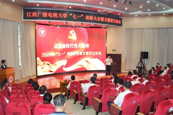 2020年是中国共产党建党99周年,是全面建成小康社会、实现第一个百年奋斗目标的决胜之年,是脱贫攻坚决战决胜之年,也是“十三五”规划收官之年。为热烈庆祝党的生日,表彰一批先进党支部、优秀党务工作者和优秀共产党员,7月1日上午,江西广播电视大学举行“七一”表彰大会暨主题党日活动。学校在家校领导出席,学校党员、预备党员以及入党积极分子代表参会。