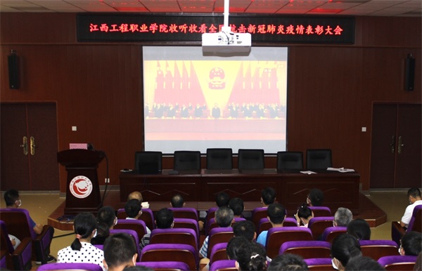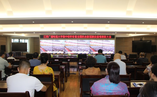 9月8日上午,江西广播电视大学全体教职员工分别在青山湖校区和抚河校区集中收听收看全国抗击新冠肺炎疫情表彰大会。