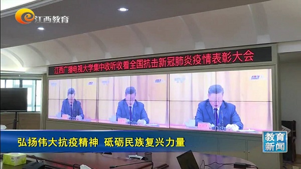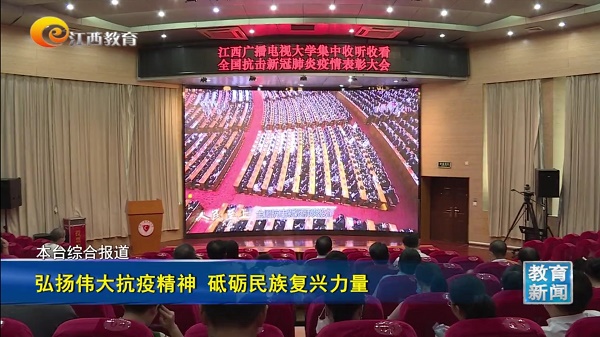 9月8日,江西教育电视台《教育新闻》栏目以《弘扬伟大抗疫精神 砥砺民族复兴力量》为题,报道必赢官网集中收听收看全国抗击新冠肺炎疫情表彰大会活动。
