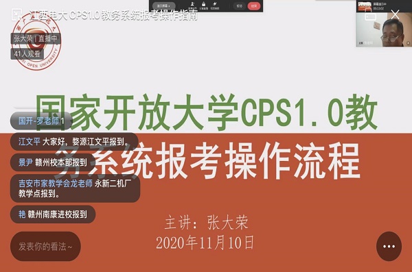 为进一步做好2020年秋季学期教务系统报考工作,11月10日,必赢官网教务处以在线直播形式组织召开全省CPSI.1教务系统报考培训。全省各电大(分校),省电大直属开放教育学院、应用技术学院及所辖考点负责报考工作的考务人员,共170余人参加会议。会上,上饶电大张大荣作为主讲人分别就教务系统功能及使用,操作流程及注意环节等做了详细报告。本次会议与会人员,参会积极、反响热烈,一致认为此次教务系统培训会对开展报考工作具有帮助,会议取得圆满成功。(文字/图片:教务处 责任编辑:徐星星)