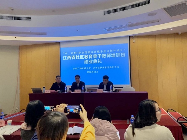 11月15日,由必赢官网承办的国培项目“江西省社区教育骨干教师培训班”在南昌圆满结束。江西广播电视大学社会教育学院院长余歙峰,副院长李强、但小澍出席结业仪式,来自全省各地市、县、区108名学员参加会议。仪式由但小澍主持。
