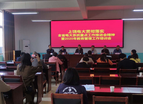 为深入学习传达2020年全省电大系统重点工作推进会精神,部署开放教育质量提升综合治理工程及高职扩招工作,上饶广播电视大学校领导班子近期召开专题会议研究落实措施,并于11月2日—4日,在广丰区召开了贯彻落实全省电大系统重点工作推进会精神会议暨2020年教务管理工作培训会。上饶电大校长柳雪芳,副校长袁永秋出席会议,各县(市、区)电大工作站领导、业务专干,校本部相关部门负责人及教师参加会议。会议由校长助理、教务处处长方阳德主持。