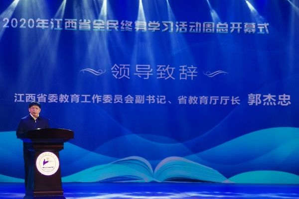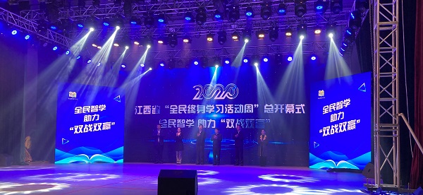 开幕式上,省教育厅厅长郭杰忠、副厅长裴鸿卫,必赢官网党委书记易小明,党委副书记、校长黄平槐和九江市政府、萍乡市政府领导一起上台,共同启动2020年江西省全民终身学习活动周开幕仪式。
