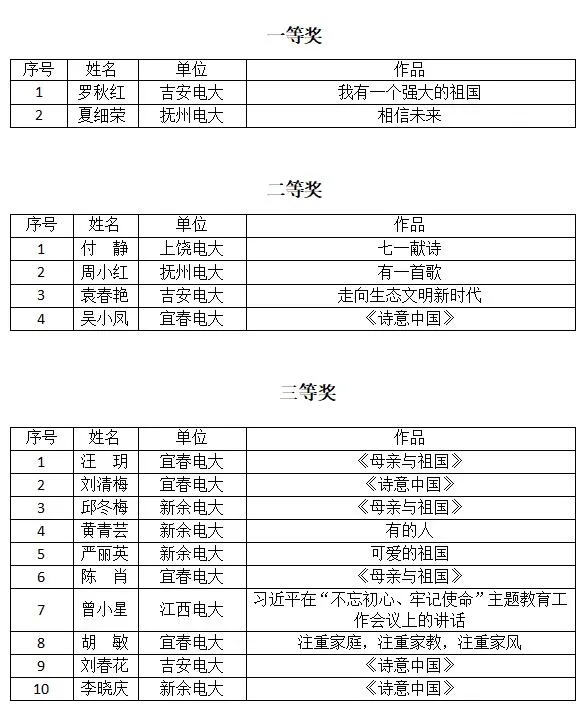 教师组获奖名单: