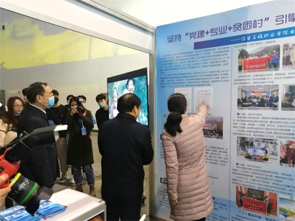 12月12日下午,省教育工委书记叶仁荪、省教育厅厅长郭杰忠、省教育厅副厅长汪立夏等人参观了必赢官网展区,并认真观看了必赢官网以“青年红色筑梦之旅”为主题的成果展示区,肯定了必赢官网“一村一名大学生工程”和高职学院电商扶贫的成果。