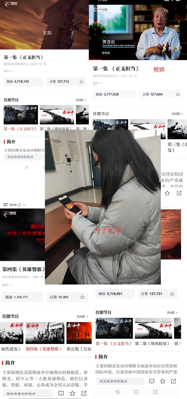 近日,必赢官网组织全体教师观看大型电视纪录片《为了和平》,深入贯彻落实习近平总书记在纪念中国人民志愿军抗美援朝出国作战70周年大会上的重要讲话精神,大力弘扬抗美援朝精神,开展新时代爱国主义教育。学校教师积极观看、讨论激烈,一致表示将学习贯彻习近平总书记在纪念中国人民志愿军抗美援朝出国作战70周年大会上的重要讲话精神,深刻领会伟大的抗美援朝精神,并将其融入课堂教学中,引领学生厚植爱国主义情怀,成长为能担当民族复兴大任的时代新人。(文字:徐星星 图片:夏文慧 责任编辑:张睿)