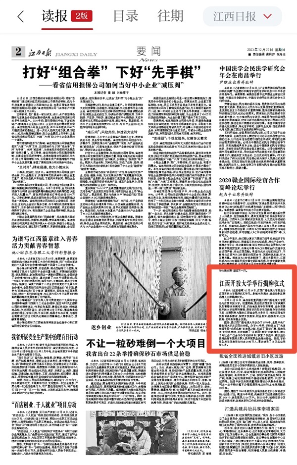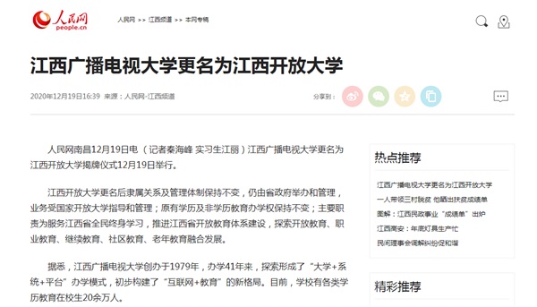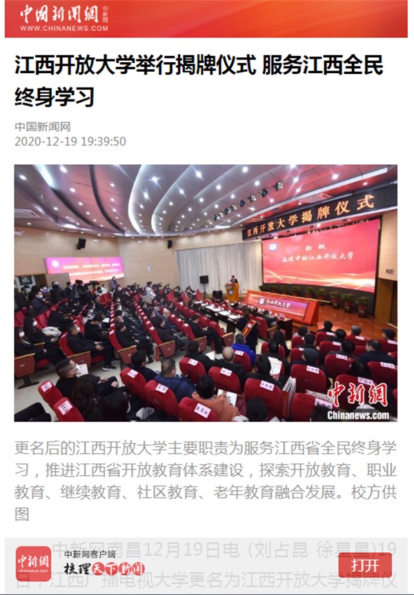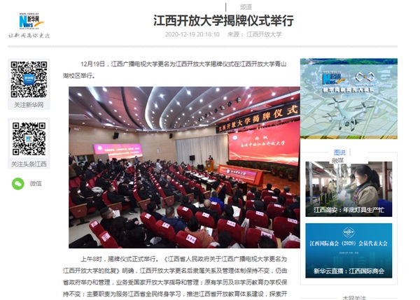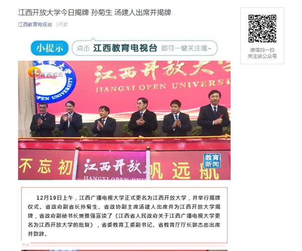 在决胜收官与谋划新局的关键之年,江西省人民政府批准江西广播电视大学更名为437必赢会员中心,实现了全省电大人的夙愿。12月19日-21日,江西日报、“学习强国”学习平台、新华社、人民网等多家主流媒体相继报道437必赢会员中心更名盛况。