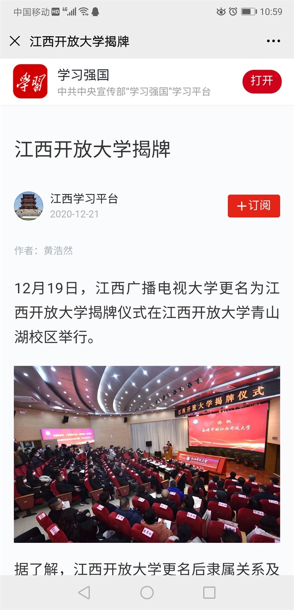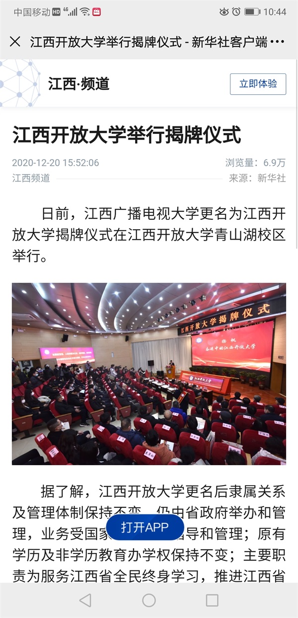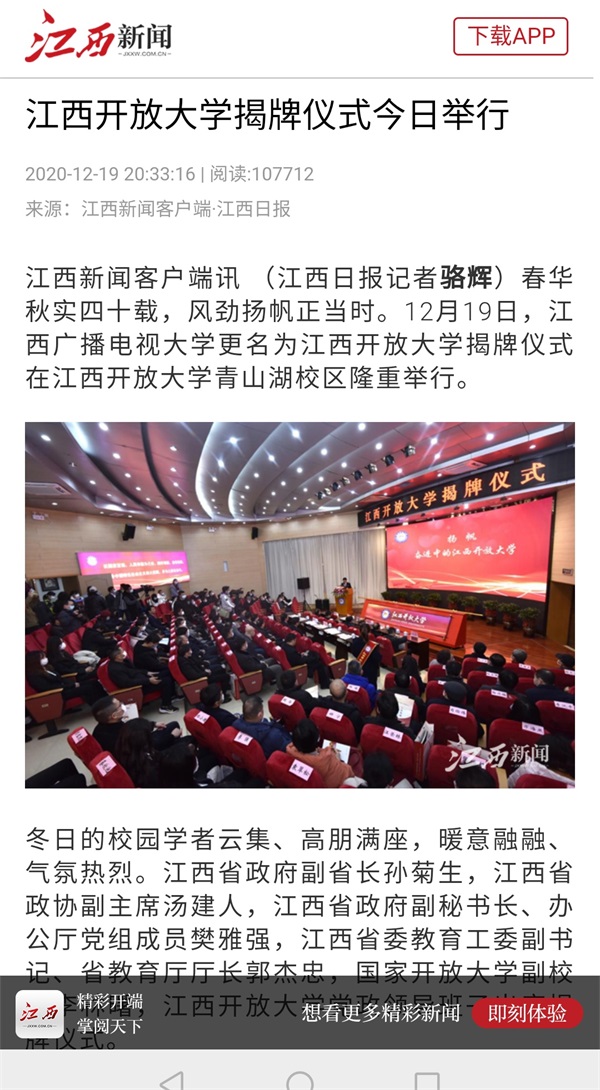在决胜收官与谋划新局的关键之年,江西省人民政府批准江西广播电视大学更名为437必赢会员中心,实现了全省电大人的夙愿。1219-21日,江西日报、“学习强国”学习平台、新华社、人民网等多家主流媒体相继报道437必赢会员中心更名盛况。