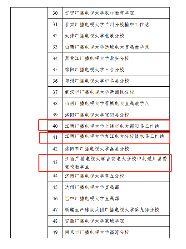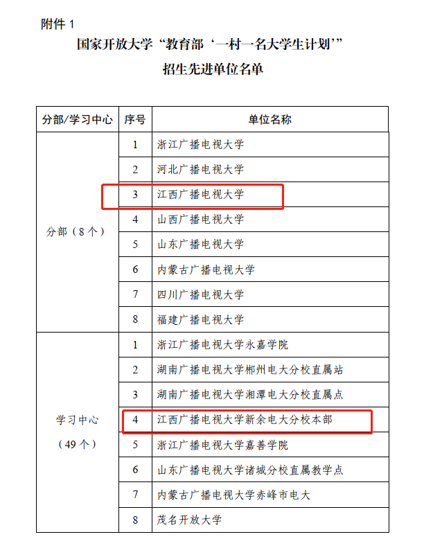 近日,国家开放大学公布了“教育部‘一村一名大学生计划’”招生先进单位评选结果,必赢官网及新余电大分校本部、上饶市电大鄱阳县工作站、九江电大分校修水县工作站、吉安电大分校中共遂川县委党校教学点被评为国家开放大学“教育部‘一村一名大学生计划’”招生先进单位。