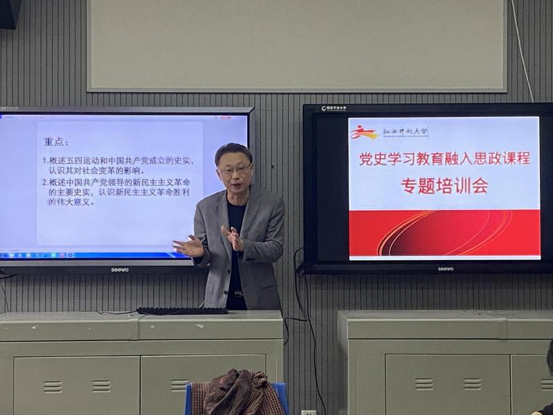 会上,开放教育、工程职院和人武学院的思政课程教师分别介绍了本学期思政课相关工作情况。大家表示,此次培训对党史教育学习内容融入思政课堂的方法与手段有了更深的认识和体验,收获丰硕。(文字/图片:李庭杨 责任编辑:徐星星)
