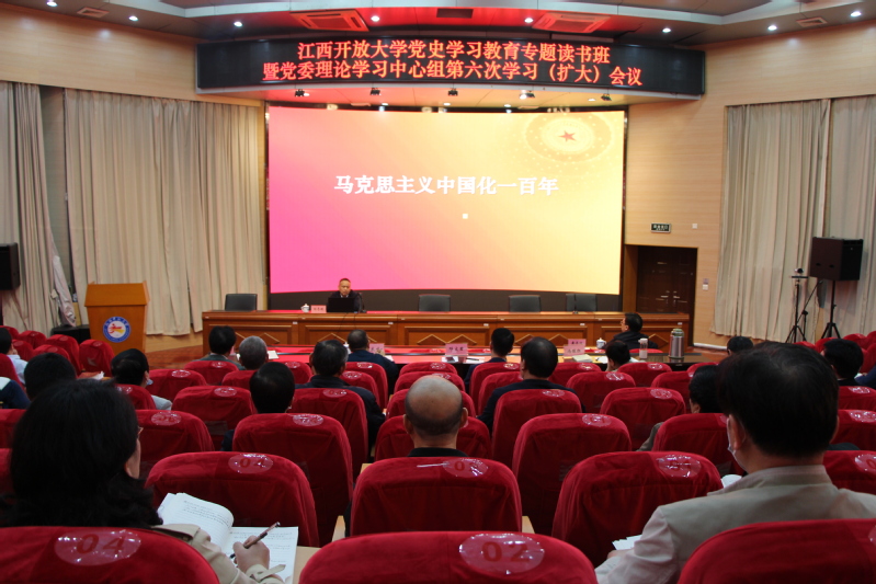 4月25日,437必赢会员中心党史学习教育专题读书班开班式在青山湖校区举行,学校特邀中国社科院马克思主义研究院马克思主义中国化研究部主任,研究员刘志明教授作首期专题辅导。校党委副书记邓文君出席并做动员讲话,副校长刘平,党委委员、副校长邱东升,党委委员、副校长冯豫红出席,学校副处级以上干部参加读书班。本次读书班由校党委副书记、校长黄平槐主持。