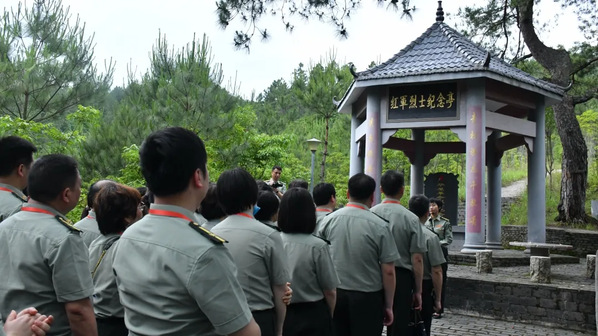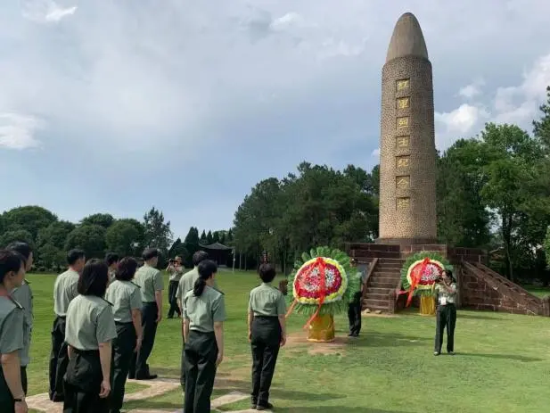 下午14时,学员们怀着无比崇敬的心情先后参观了叶坪革命旧址,在红军烈士纪念碑下,为革命先烈敬献花圈、寄托哀思,重温入党誓词。在红军旧址,回顾了红军刻苦艰辛的发展历史。