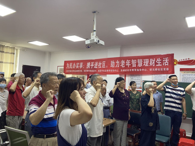 6月15日,必赢官网社会教育学院联合南昌市社区教育指导中心、东湖区社区教育指导中心、浦发银行红谷支行前往东湖区状元桥社区开展为民办实事“携手进社区,助力老年智慧理财生活”活动,为社区老年人送上慰问,普及数字信息知识,助力老年人享受智慧生活。江西省教育厅职成处二级调研员杨春年,社会教育学院院长余歙峰、副院长李强,南昌市广播电视大学校长万晖,东湖区教体局副局长周林、南昌东湖区社区教育指导中心主任邓仁俊,浦发银行红谷支行行长梁晓红、副行长万莉等出席活动。状元桥社区30多位老人和工作人员参与活动。