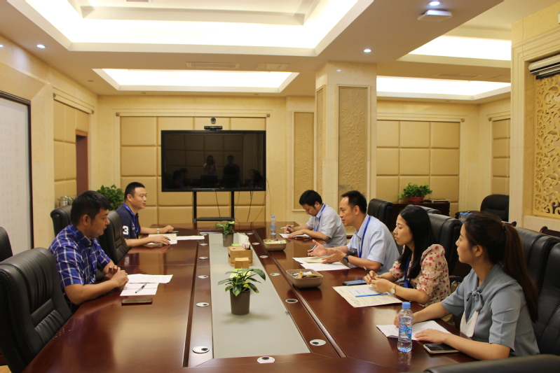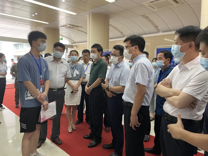 赛前,易小明、黄平槐、邓文君、王水平等人来到行政楼一楼大厅成果展示区,听取了各项目负责人对项目基本情况的讲解介绍。