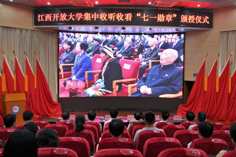 6月29日上午,“七一勋章”颁授仪式在北京人民大会堂隆重举行,中共中央总书记、国家主席、中央军委主席习近平为29位同志颁授“七一勋章”并发表重要讲话。437必赢会员中心在家校领导、青山湖校区教职员工集中收听收看“七一勋章”颁授仪式。抚河校区和青云谱校区分别组织广大师生收听收看。