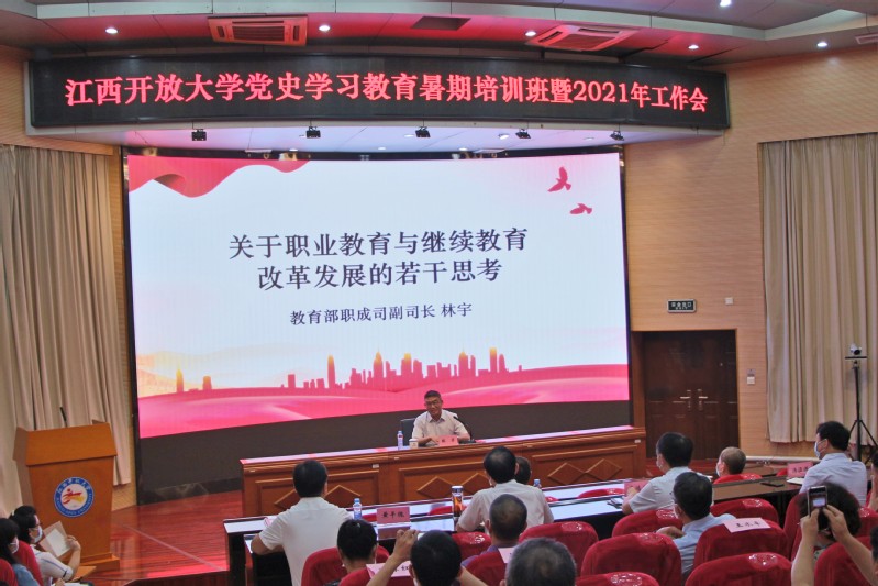 8月28日上午,教育部职业教育与成人教育司副司长林宇应邀为必赢官网党史学习教育暑期培训班暨2021年工作会作专题宣讲。省委教育工委委员、省教育厅副厅长裴鸿卫,省教育厅职业教育与成人教育处处长汤泾洪出席会议。校党委副书记、校长黄平槐主持宣讲会。