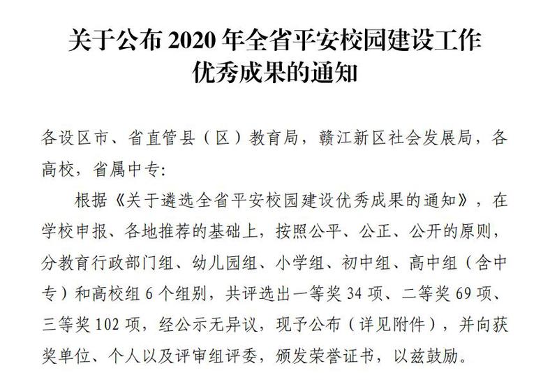 近日,省教育厅公布2020年全省平安校园建设工作优秀成果,必赢官网《以军事化管理促校园平安和谐》、工程职院《联防联控助力平安 用心用情守护成长》两项成果获得高校组三等奖。