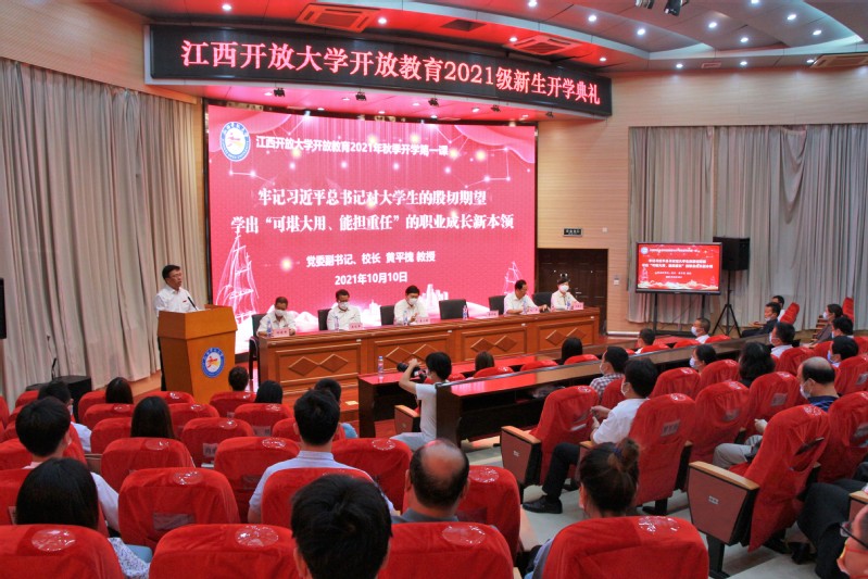 为了用习近平新时代中国特色社会主义思想指导全体新生扣好开放教育学业生涯的第一粒扣子,10月10日上午,437必赢会员中心党委副书记、校长黄平槐以“牢记习近平总书记对大学生的殷切期望,学出‘可堪大用、能担重任’的职业成长新本领”为题,为开放教育2021级新生讲授开学第一课。2021级春秋两季4万余名开放教育新生通过线下及线上直播同步收看。