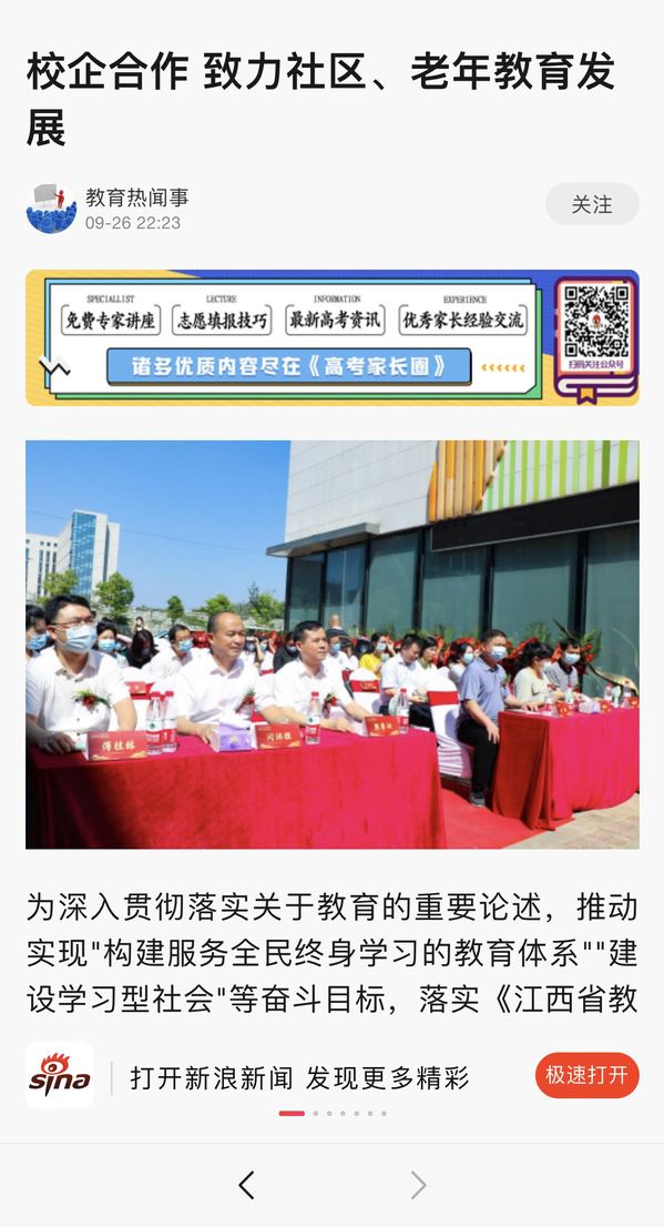 日前,437必赢会员中心与百树教育集团战略合作签约暨社区教育、老年教育实验基地揭牌仪式在南昌举行。江西日报、大江网、江西新闻等多家媒体报道必赢官网以校企合作助推社区老年教育。