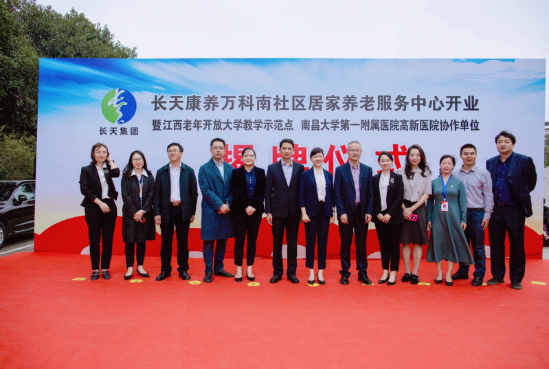 10月14日,正值重阳佳节,为贯彻习近平总书记对老龄工作的重要指示,落实积极人口老龄化战略,江西老年开放大学教学示范点在南昌长天康养万科南社区居家养老服务中心正式揭牌。校党委委员、副校长冯豫红,江西长天集团监事会主席曾金应出席仪式并为教学示范点揭牌。学校社会教育学院、老年开放教育学院院长余歙峰,高新区党工委委员、组织部部长熊俊,高新区社发局局长、卫生健康和疾病预防控制中心主任涂相玉,高新区社发局副局长吴婷,长天康养实业集团总经理董娟、副总经理符小平,长天松康公司副董事长闻人昕,长天松康公司总经理王莉等出席揭牌仪式。