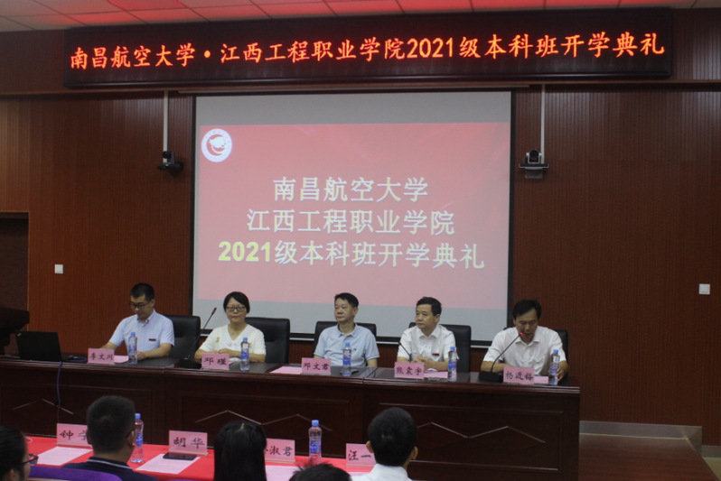 10月10日上午,南昌航空大学与必赢官网工程职院联合培养2021级电子商务本科班新生开学典礼在抚河校区学术报告厅隆重举行。437必赢会员中心党委副书记邓文君,南昌航空大学党委常委、副校长熊震宇,南昌航空大学党委常委、组织部部长兼经管学院院长邓瑾,南昌航空大学经管学院副院长李文川,南昌航空大学经管学院管理科学与工程系主任张耀坤以及学院在家院领导出席典礼。学院相关部门负责人、教师代表和100余名本科学生代表参加典礼。开学典礼由院党委书记杨近铬主持。