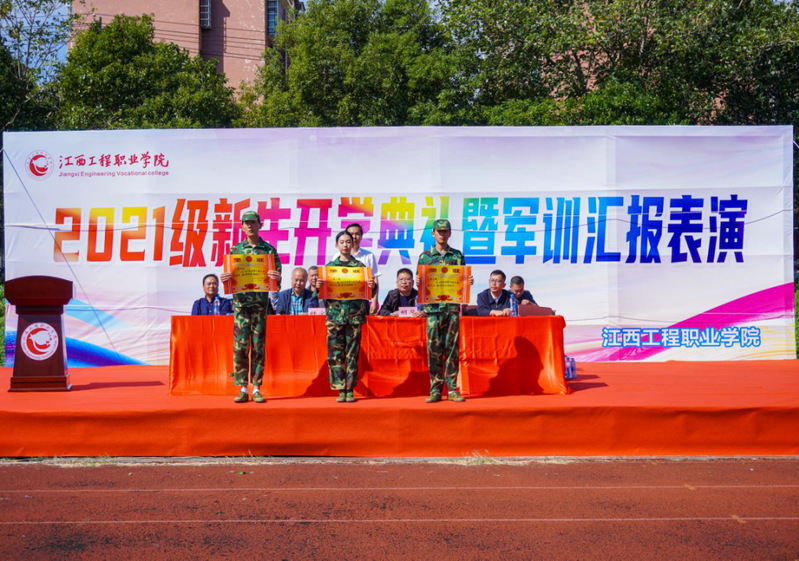 典礼宣读了《江西工程职业学院关于表彰2021级学生军训优秀连队、优秀学员的决定》,出席开学典礼的院领导为优秀连队、优秀教官、优秀学员代表颁发了荣誉证书。