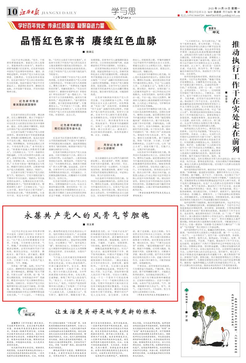 邓文君在江西日报发表文章 《永葆共产党人的风骨气节胆魄》