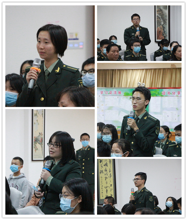“你是怎么想的呢?”一个小时的交流讨论中,这是黄平槐对现场师生最常问的一句话。单向的阐释转换为双向的思想碰撞,黄平槐与师生围绕人的成长发展、人的格局与价值、人的社会生态意识、将军事化管理传统转型升级为教学改革项目优势等话题,进行了深入交流。现场师生纷纷表示深受启发、受益匪浅。人武学院副院长杨柳受现场气氛感染,也与同学们分享了两位毕业生的故事,鼓励同学们向前辈学习,撸起袖子加油干。