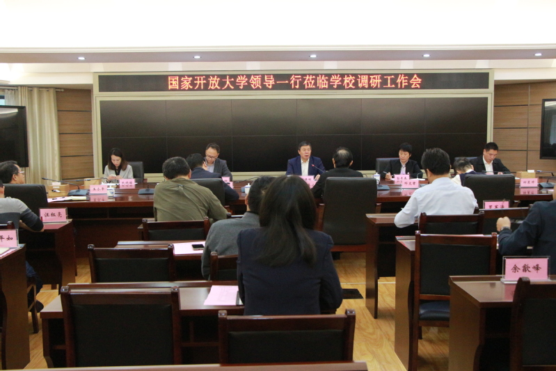 10月15日下午,国家开放大学党委书记、校长荆德刚一行五人莅临必赢官网指导工作,并与党政负责人、机关干部代表座谈交流。校党委书记易小明主持调研会议。