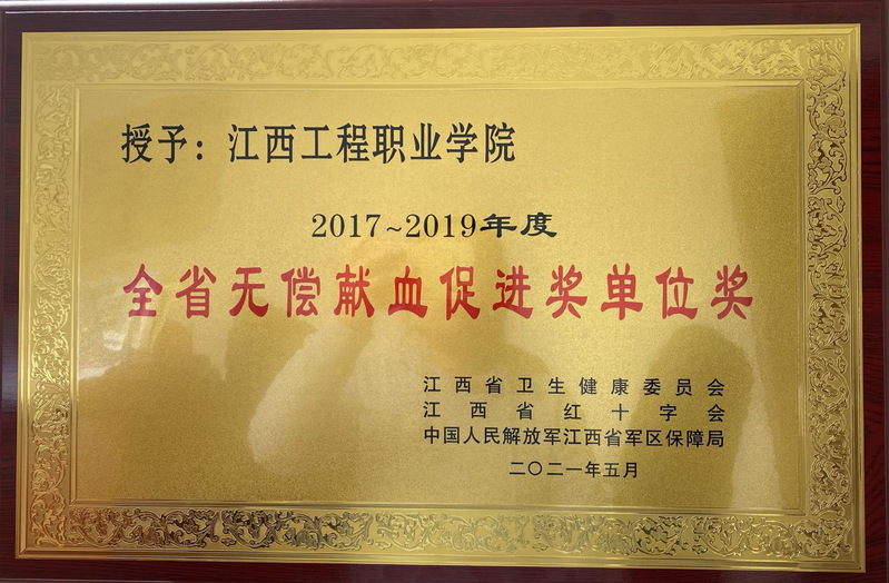近日,江西省卫生健康委员会、江西省红十字会、中国人民解放军江西省军区保障局联合发文,公布了《关于表彰2017-2019年度全省无偿献血先进单位和个人的决定》,必赢官网工程职院荣获“2017-2019年度全省无偿献血促进奖单位奖”。