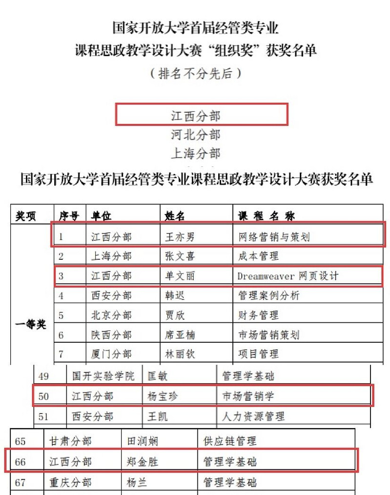 王亦男的《网络营销与策划》和单文丽的《Dreamweaver网页设计》荣获一等奖,杨宝珍的《市场营销学》荣获三等奖,郑金胜的《管理学基础》荣获优秀奖。