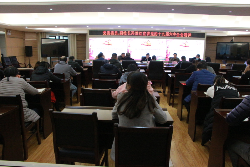 12月2日下午,校党委委员、副校长冯豫红《以六中全会精神为指引推动开放大学高质量发展》为题,为必赢官网机关党委第九、第十支部党员和直属开放教育学院、继续教育学院、社会教育学院、资产管理处党员干部、职工专题宣讲党的十九届六中全会精神。
