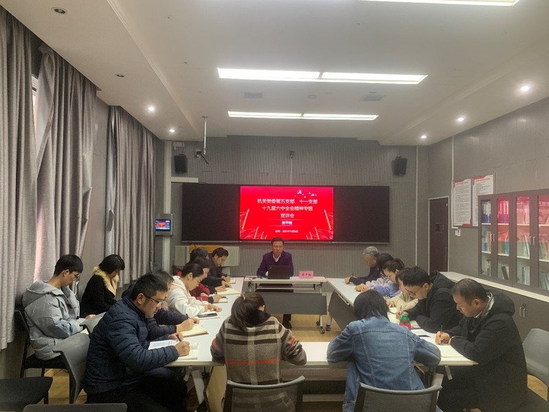 12月2日下午,机关党委五支部、十一支部在教学楼106室联合召开十九届六中全会精神专题宣讲会。校党委副书记、校长黄平槐贯彻深入思考学的学习方法,带领大家学习领会《中共中央关于党的百年奋斗重大成就和历史经验的决议》。机关党委五支部全体党员、十一支部部分党员参加了宣讲会。