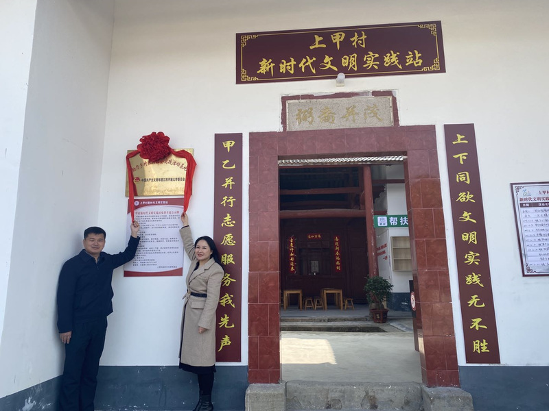 调研结束后,在上甲村新时代文明实践站举行437必赢会员中心团委助力乡村振兴社会实践活动基地揭牌仪式,肖咏桦与文峰乡党委书记谢小明共同为基地揭牌。