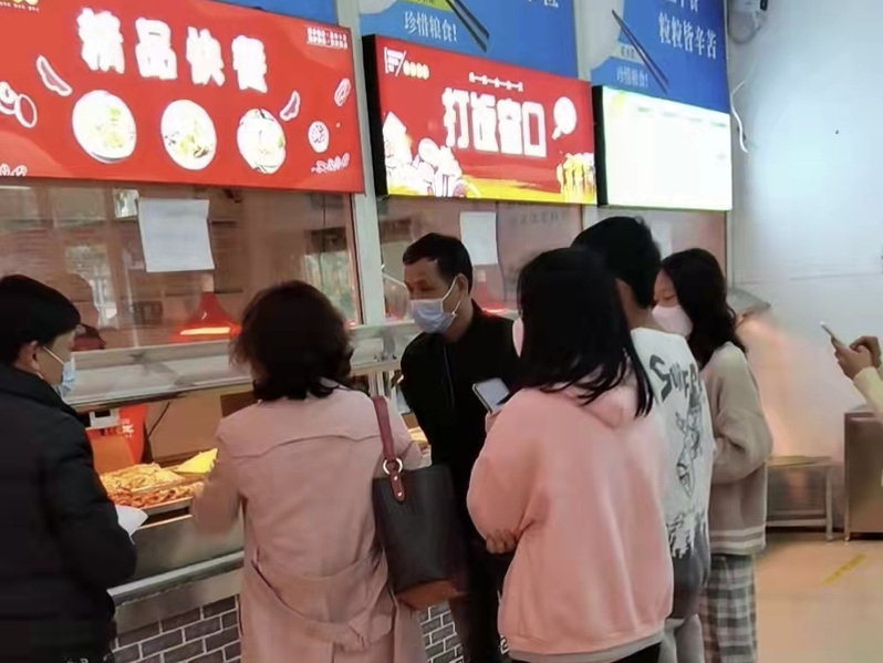 疫情防控期间做好食堂服务保障工作,事关师生生活质量保障,事关学生情绪稳定,事关疫情防控校园闭环管理大局学校将进一步严格做好食堂每天的消杀、通风工作加强食堂工作人员健康监测和卫生教育,定期进行核酸检测进一步加强食堂进货查验确保进货渠道正宗,保障所有食品质量和食品安全进一步加强采购食材卫生清洁入校消杀,确保食材安全卫生做到每天食品留样进一步改进菜品保障确保菜品品种多样丰富多彩进一步严控食堂随意涨价,出现因随意涨价进行重处重罚确保价优量足进一步保障取餐安全食堂保证按时供餐,学生错峰用餐严格一米线戴口罩不堂食等制度后勤保障中心将不断提高食堂服务保障水平全力保障广大师生饮食安全提升饮食质量,营造安全放心健康平稳的校园饮食环境。(供稿后勤保障中心 编辑徐星星 责编王松华