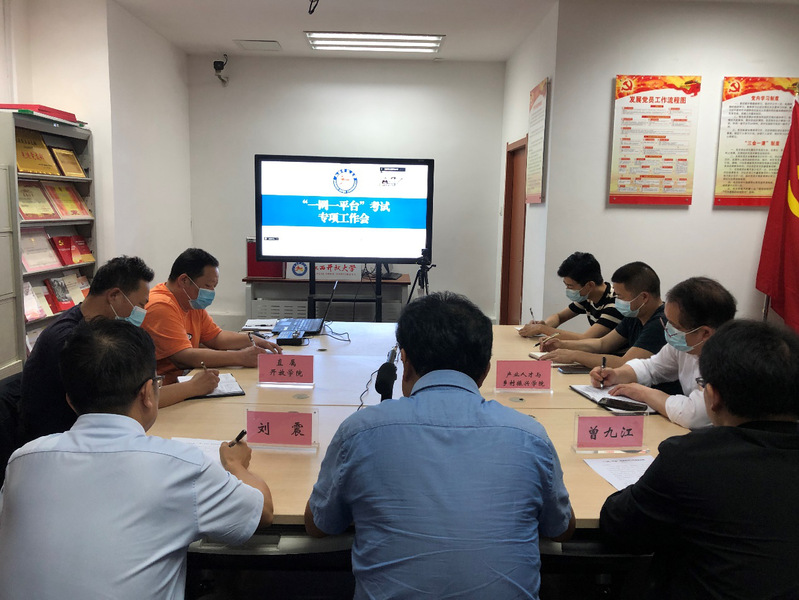 会议立足考点、市校(学院)及省校三个层面,对“一网一平台”考试试点工作进行了布置,并对考试违规处理办法做了解读。