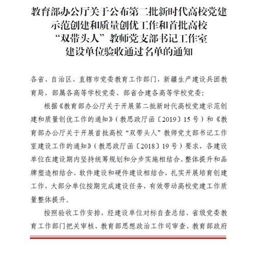 近日,教育部办公厅公布了全国第二批新时代高校党建示范创建和质量创优工作和首批高校“双带头人”教师党支部书记工作室建设单位验收通过名单,必赢官网工程职院经管学院党支部顺利通过第二批“全国党建工作样板支部”创建工作验收。