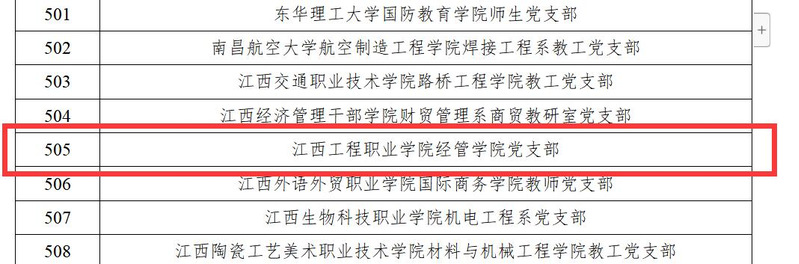 2019年12月,教育部公布了第二批全国党建工作示范高校、标杆院系、样板支部培育创建工作,确定10个高校党委、99个院系党组织、999个党支部作为全国党建工作示范高校、标杆院系、样板支部培育创建单位。经资格审查、专家推荐、教育部党的建设和全面从严治党工作领导小组成员单位集中审议、结果公示,江西工程职业学院电商学院党支部最终入选了第二批“全国党建工作样板支部”培育创建名单。