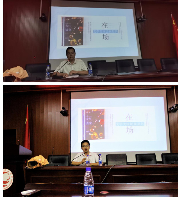 主讲嘉宾陈志宏为437必赢会员中心副教授、工程职院党委宣传部副部长,中国作家协会会员、南昌市民间文艺家协会副主席、南昌市散文学会副会长。他以在场的名义,以新书《大红请柬》为载体,阐释文学的人民性和时代性,宣传习近平总书记关于文艺创作的重要论述,全面阐述文学关注民族复兴伟业的积极探索与生动实践,为在场学生普及文学知识,提升文学素养。