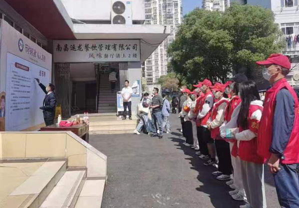 正值学生用餐时间,学生志愿者们统一集合培训后,分别前往食堂各个位置向来往师生分发珍惜粮食宣传手册和厉行节约、拒绝浪费倡议书,对践行“光盘”的师生分发爱心苹果一个,以实际行动引导引导学生尊重粮食、爱惜粮食、用餐时按需按量取食,不浪费一丝半缕,从节约“盘中餐”做起,把中国人的饭碗牢牢端在自己的手中