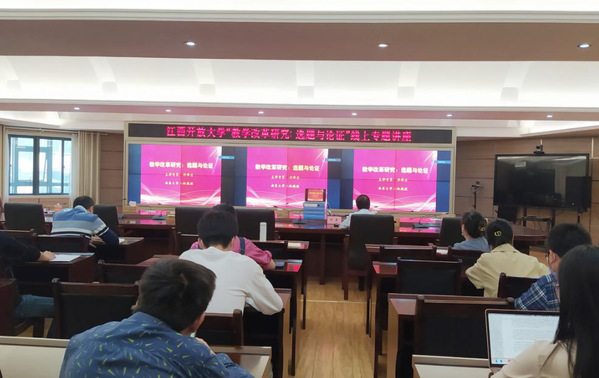 为进一步提高全省开放大学系统教师申报省级教改课题项目立项率,10月17日,教务处特邀国家二级教授、博士生导师、南昌大学许祥云教授做主题为“教学改革研究:选题与论证”的线上专题讲座。本次讲座在青山湖校区设主会场,同步开启腾讯会议直播,全省开放大学系统部分教师通过线上线下方式聆听了讲座。