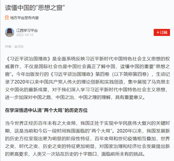 宜春开大金文玲在《江西日报》发表文章《读懂中国的“思想之窗”》