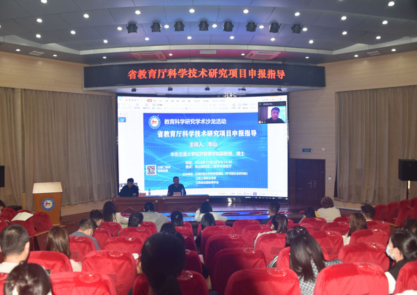 全面提升校教育厅科技项目课题申报质量水平进一步活跃学术氛围,11月2日下午,学校特邀华东交通大学副教授李山博士为校专业技术人员做专题为“科技项目申报指导”的学术讲座。全校60名教师现场聆听了讲座,其余教师通过视频直播在线收看。校党委委员、科研管理处处长张明教授主持讲座