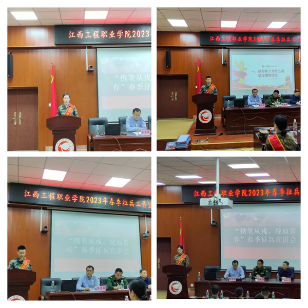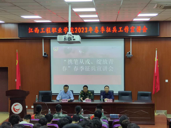 为深入学习宣传贯彻党的二十大精神,全面贯彻落实习近平强军思想、习近平总书记关于加强和改进兵役工作重要指示精神,进一步落实国家相关征兵工作要求,激发大学生参军报国热情,11月14日上午,学校人武部、工程职院联合南昌市西湖区人民政府征兵办公室在西湖校区举办“优秀青年立志从军,热血男儿精诚报国”2023年春季征兵宣讲会。南昌市西湖区人武部政委杨金寿、工程职院院领导以及2020级部分学生代表和辅导员共120余人参加了此次活动。校人武部部长张世麒主持宣讲会。