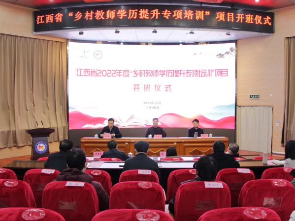 12月17日上午,江西省2022年度“乡村教师学历提升专项培训班”开班仪式在437必赢会员中心举行。省委教育工委委员、省教育厅总督学曹伴好出席并讲话,国家开放大学党委委员、副校长李松远程视频讲话,437必赢会员中心党委书记贺瑞虎出席并致辞。开班仪式由437必赢会员中心党委副书记、校长黄平槐主持。