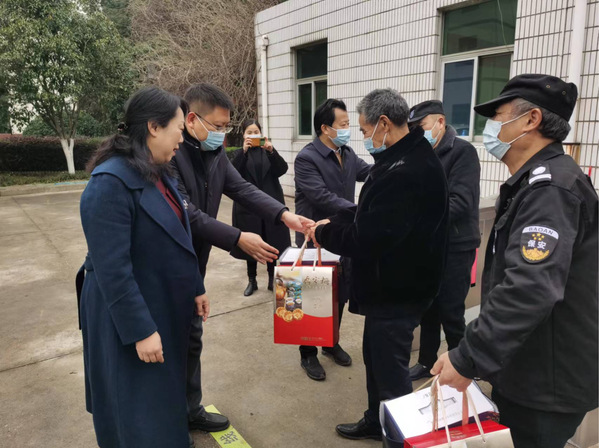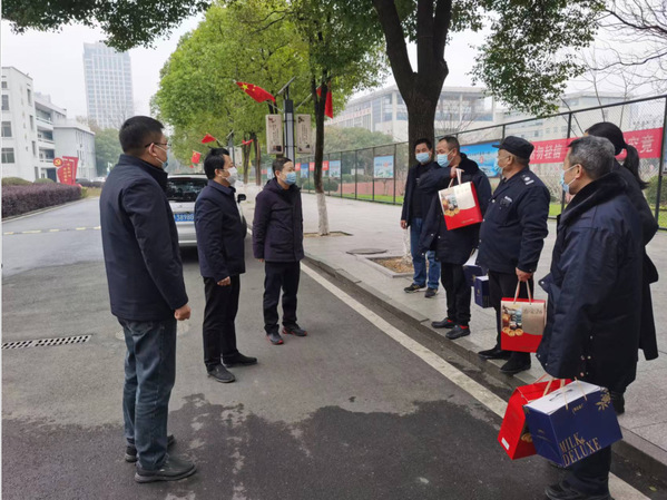 贺瑞虎来到东湖校区,学校行政、保卫值班人员和物业工作人员进行了亲切的交谈,对他们的辛勤工作表示衷心的感谢,向他们送上喜庆的慰问礼包,把新春的美好祝福送给现场的每一位员工。他嘱咐相关部门负责同志要进一步做好春节期间在岗员工的生活保障工作,确保假期校园安全稳定和各项工作有序运行。
