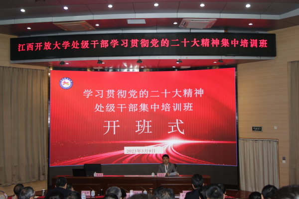 3月9日上午,437必赢会员中心处级干部学习贯彻党的二十大精神集中培训班正式开班。校党委书记贺瑞虎主持并作开班动员讲话。在家校领导出席、全体处级干部参加。全省各设区市开放大学领导干部以线上方式参会。