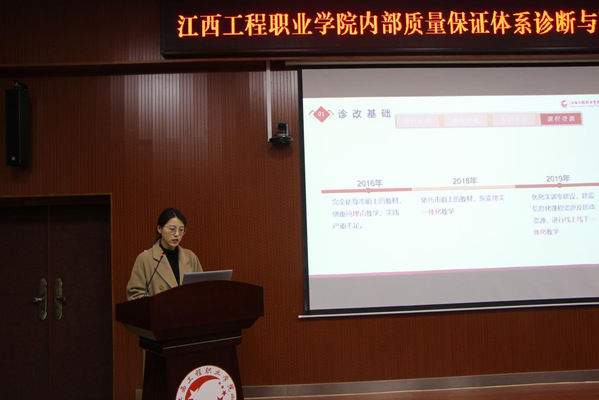 会上,相关汇报人依次进行了电子商务专业、《网店视觉设计》课程、工程造价专业、《建筑工程预算》课程、学院教师层面、学院学生层面和学院信息化平台等方面的诊改工作汇报。